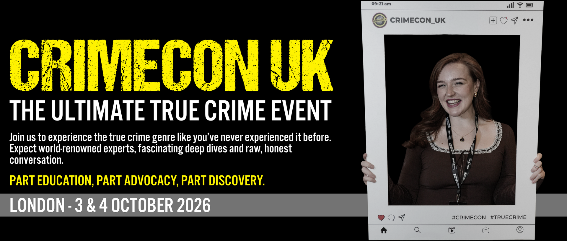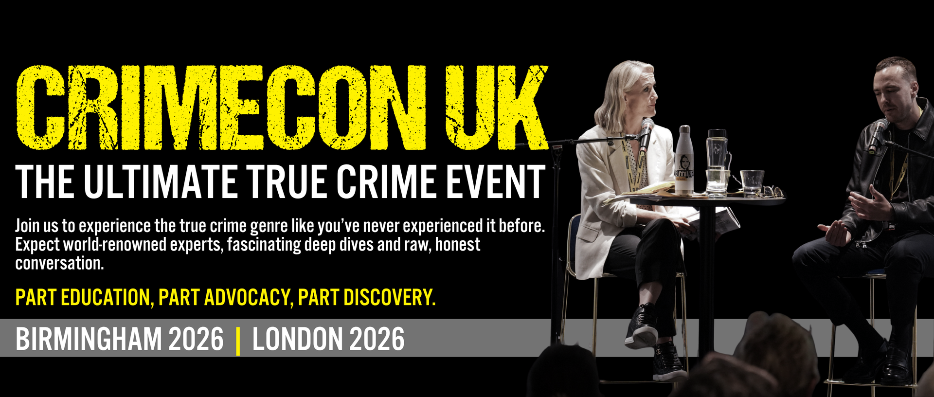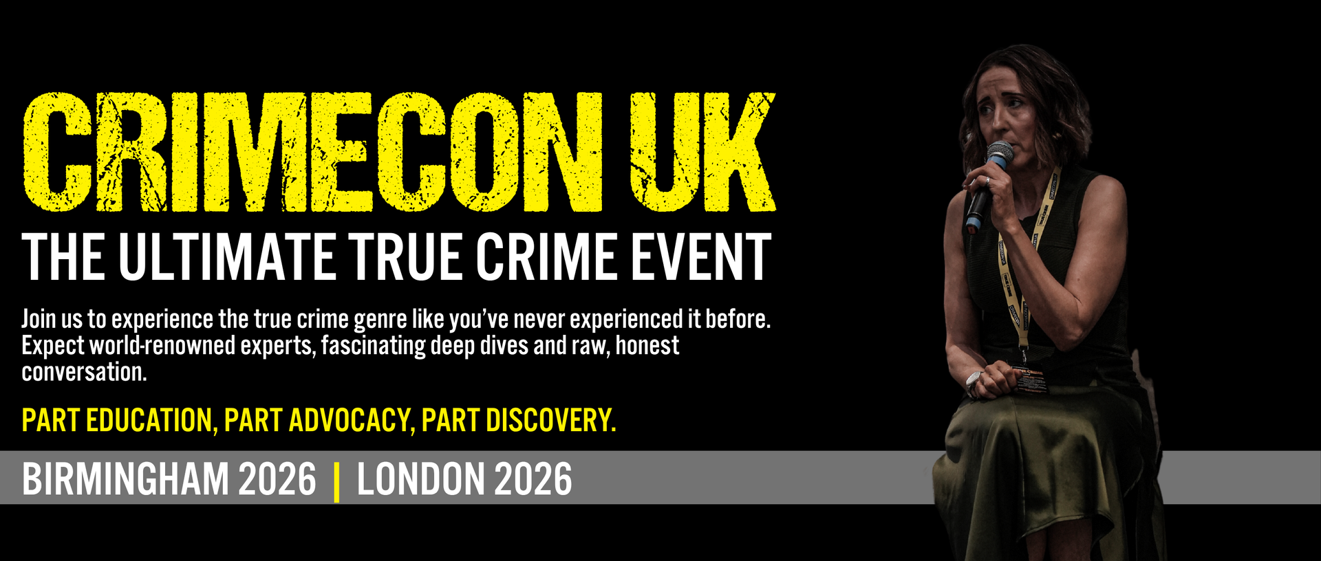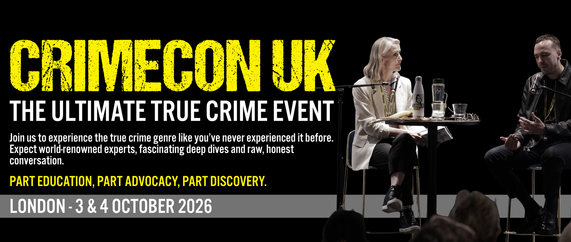 Our events are equal parts education and experience. Whether you're interested in wrongful convictions, forensic linguistics, cold cases, or the latest in forensic science, we work hard to curate a wide-ranging program that has something for everyone and combines hands-on learning with plenty of chances to have fun meeting speakers, content creators, and the wider true crime community.