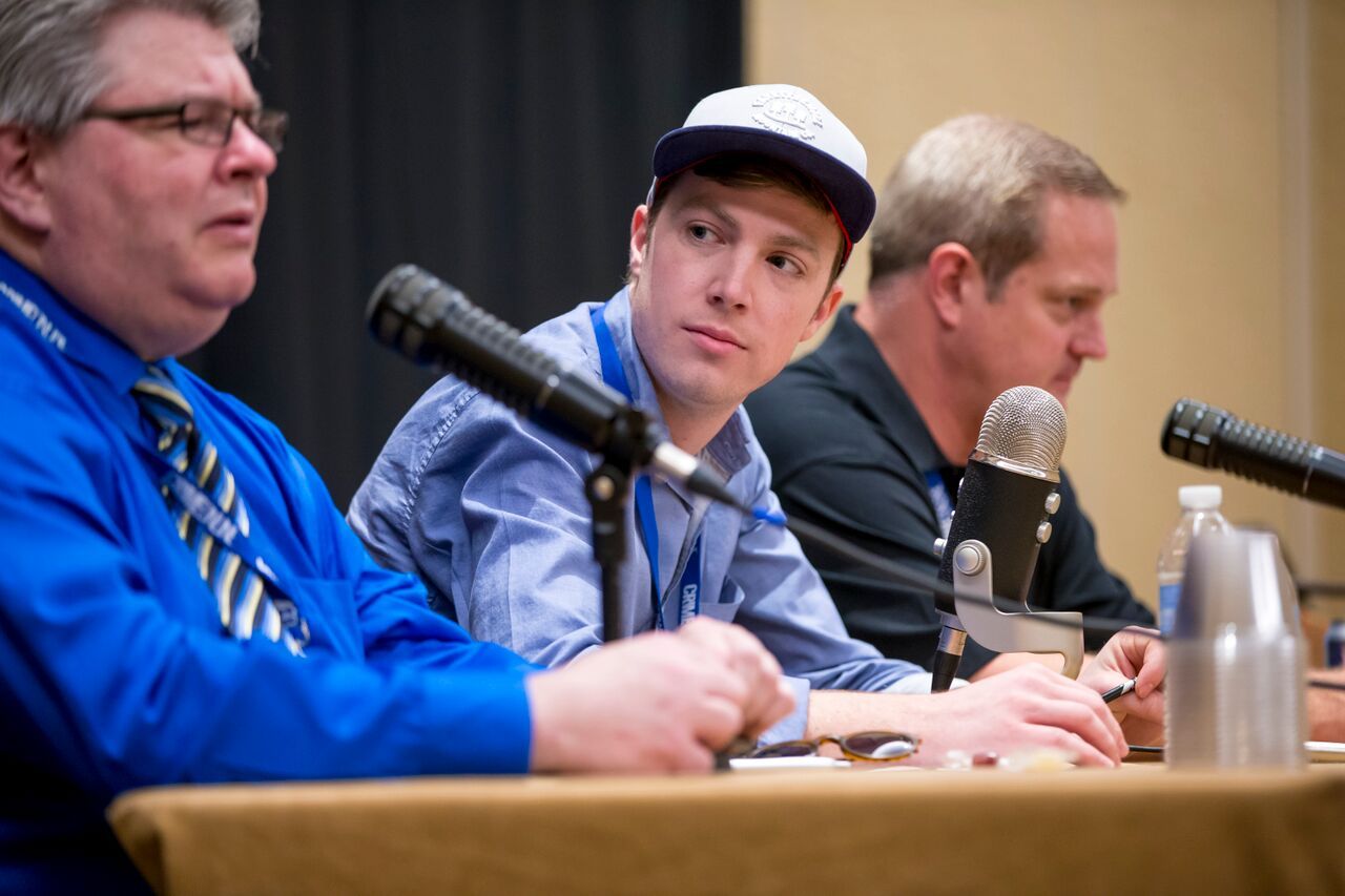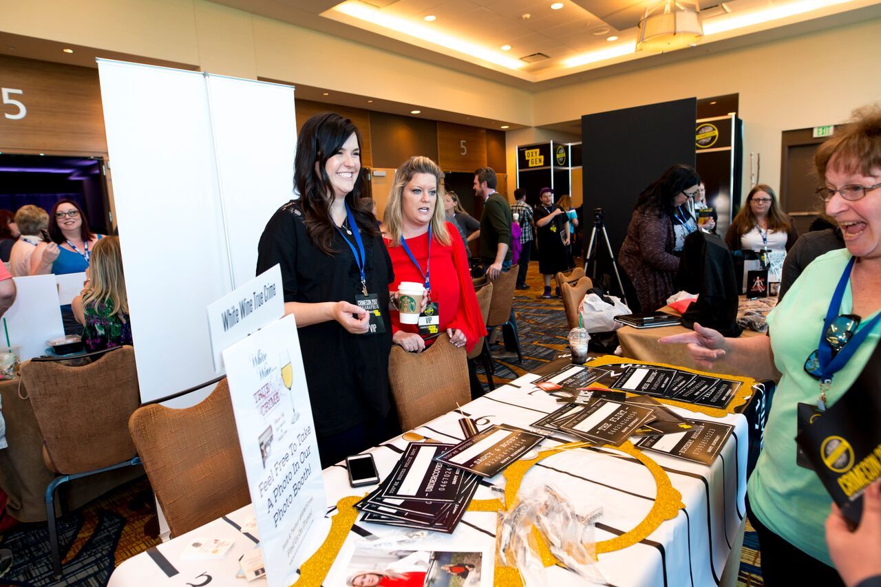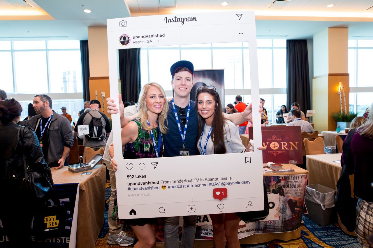 Podcasters like Payne Lindsay of Up and Vanished took photos with fans at their tables.