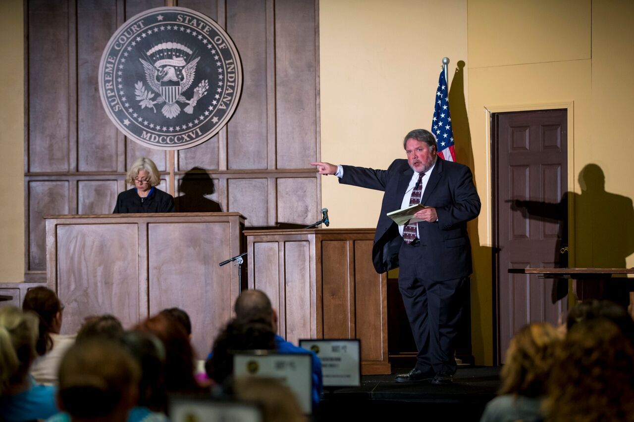 Attendees participated in a mock trial and broke into juries to deliberate.